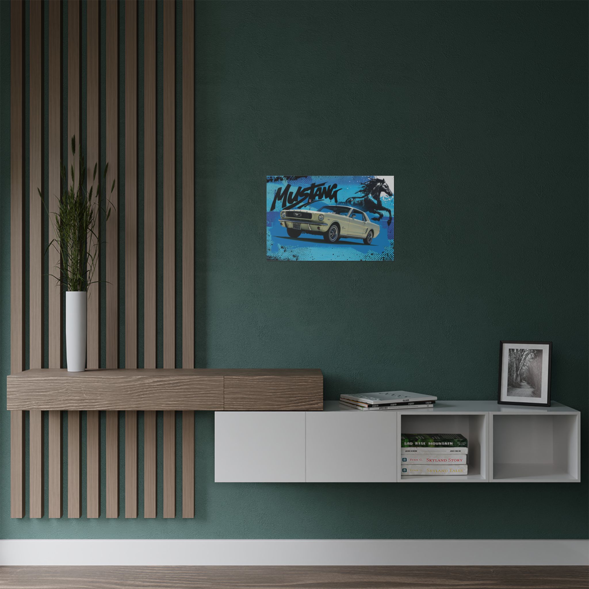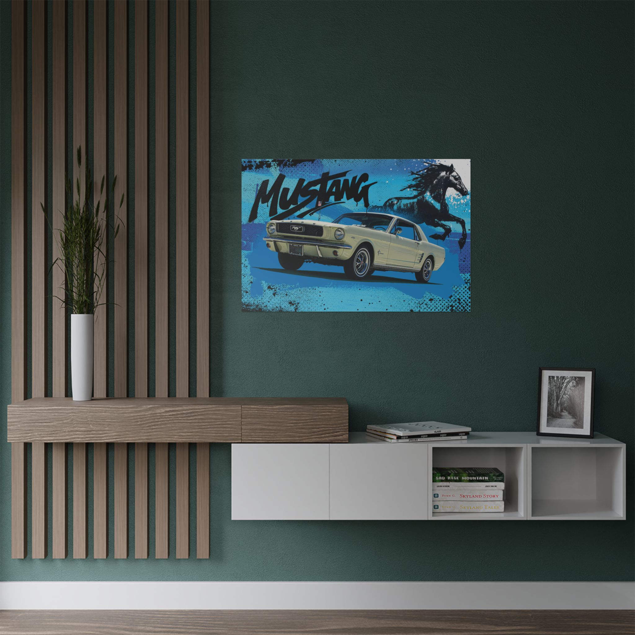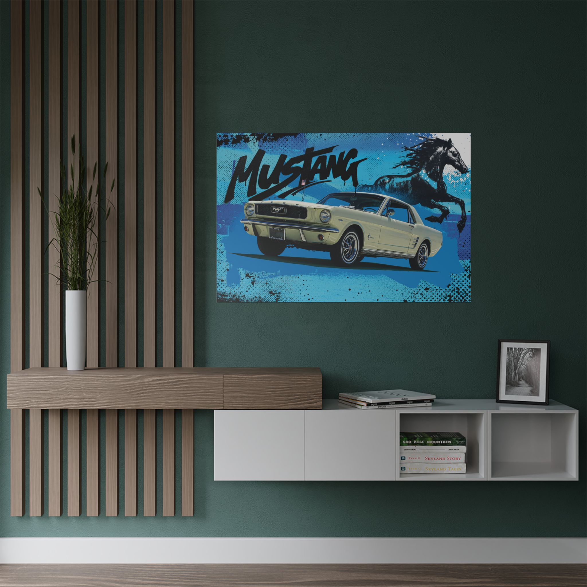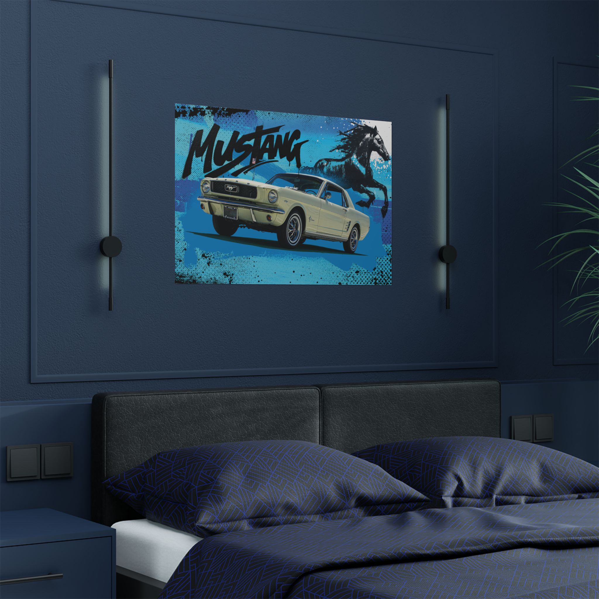 Set against a bold, graffiti-inspired backdrop, the 1966 Mustang takes center stage, raw, fearless, and dripping with attitude. It’s more than just wall art; it’s a statement for those who live and breathe classic muscle. Perfect for your garage, office, or any space that deserves a dose of pure horsepower energy.