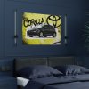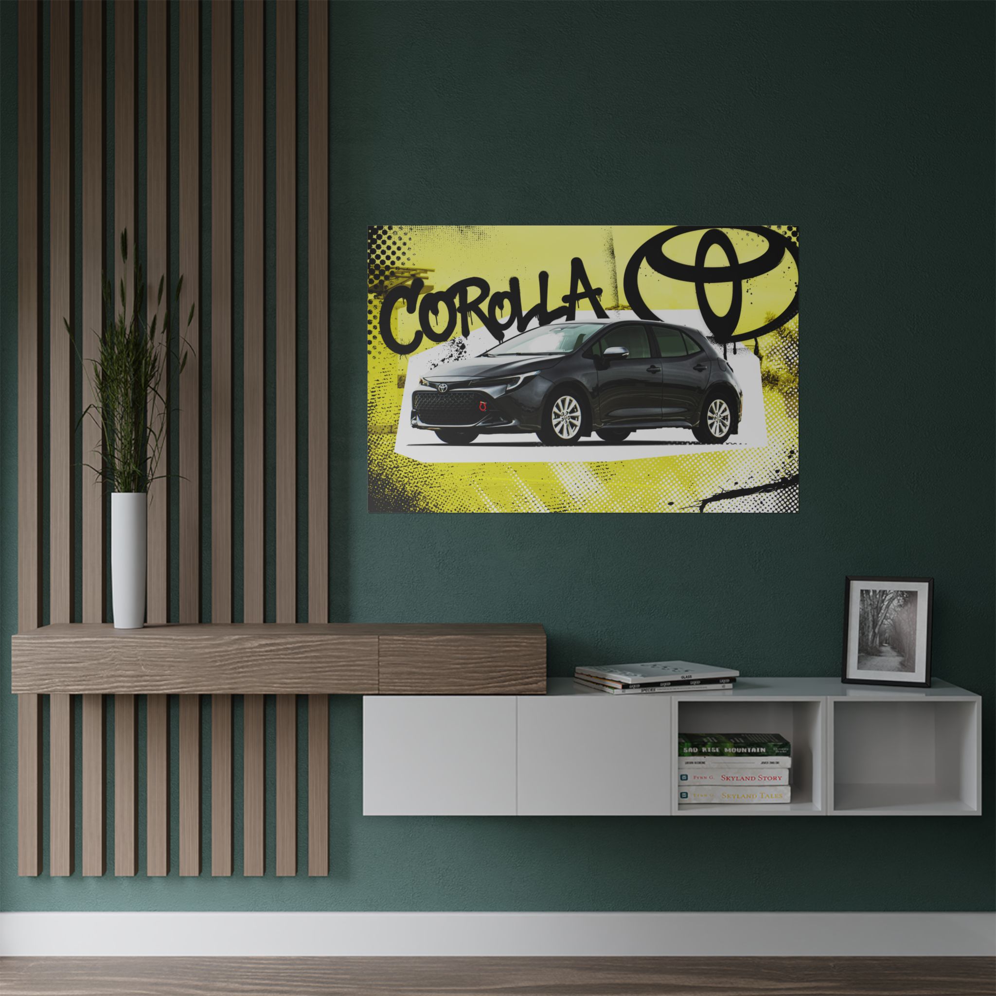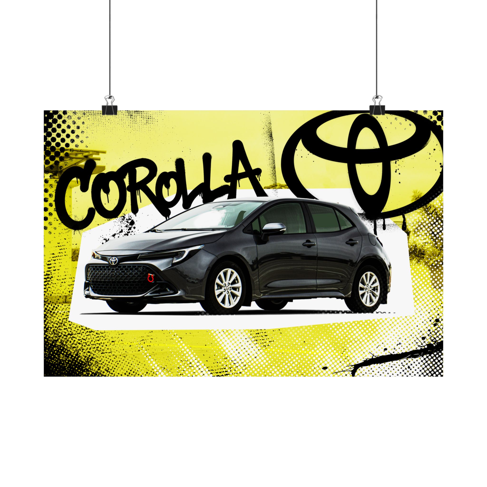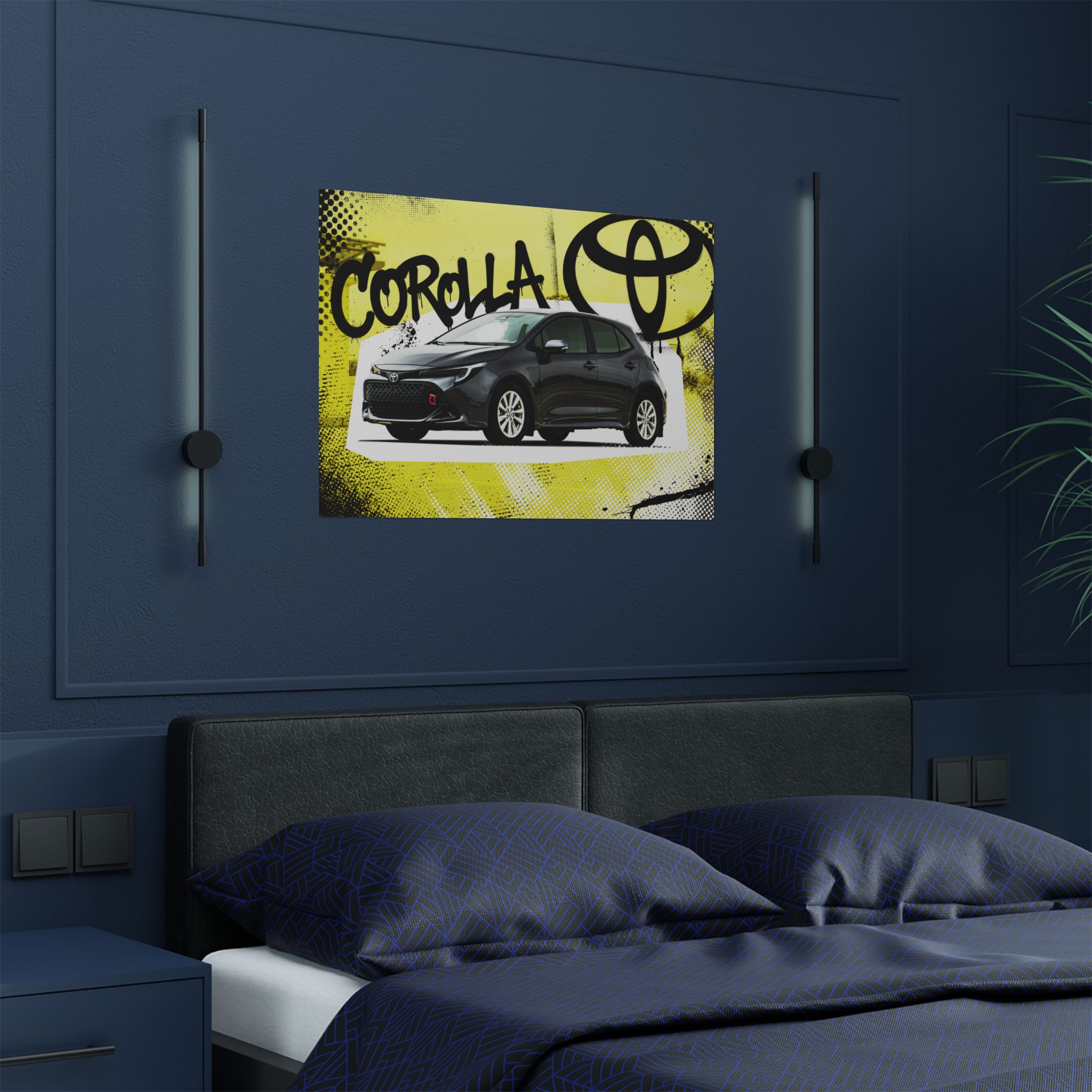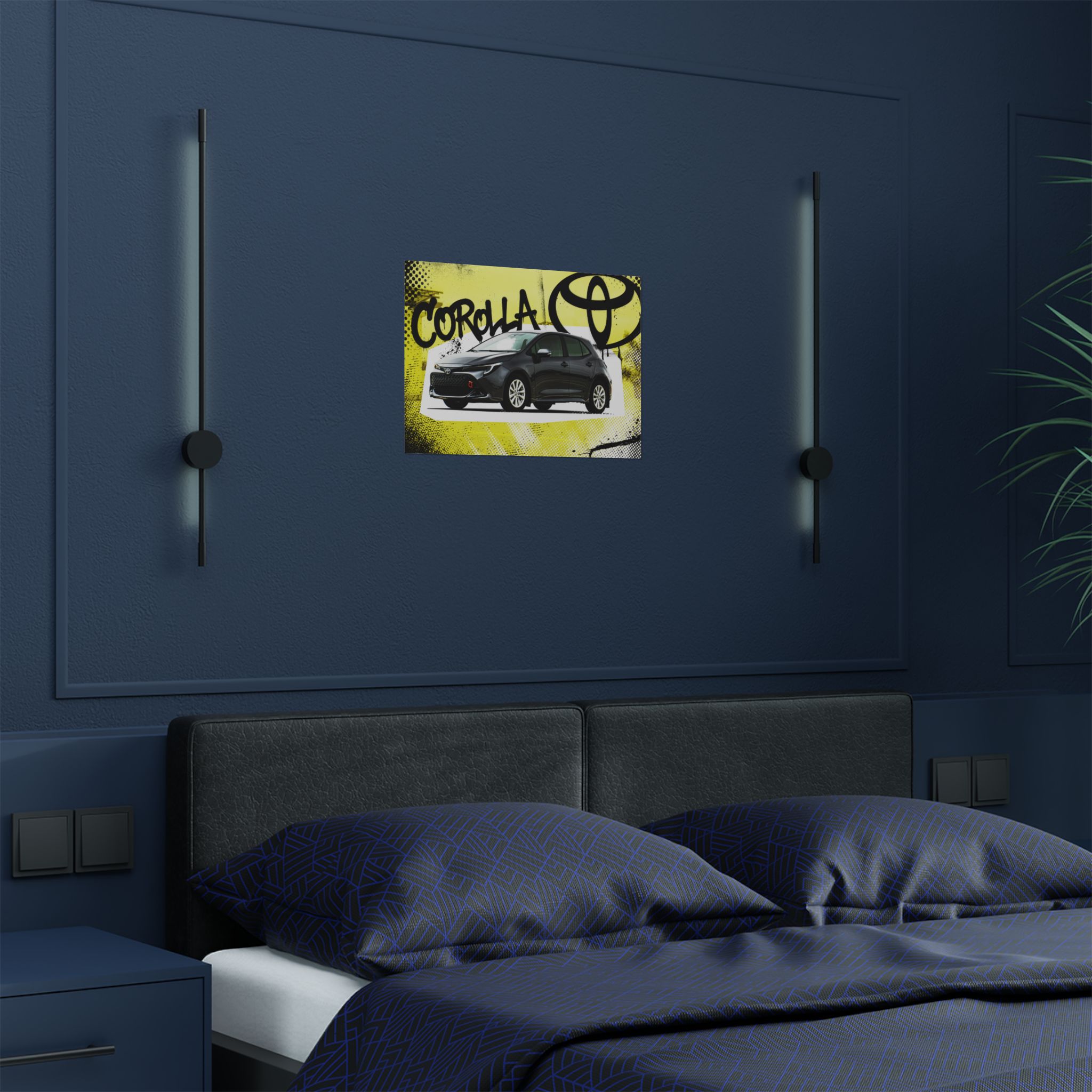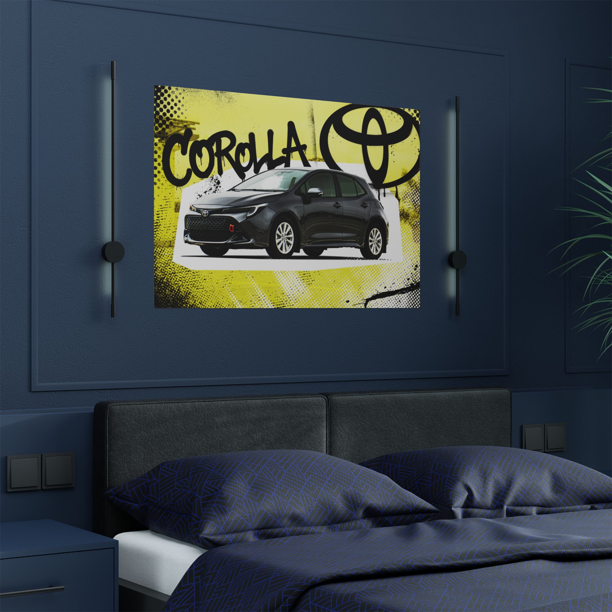 Capturing the raw energy of street culture, this design features the 2025 Corolla Hatchback against a gritty, graffiti-inspired backdrop. It’s a bold fusion of automotive design and urban art that adds a high-octane punch to any room—from your garage to your living space.