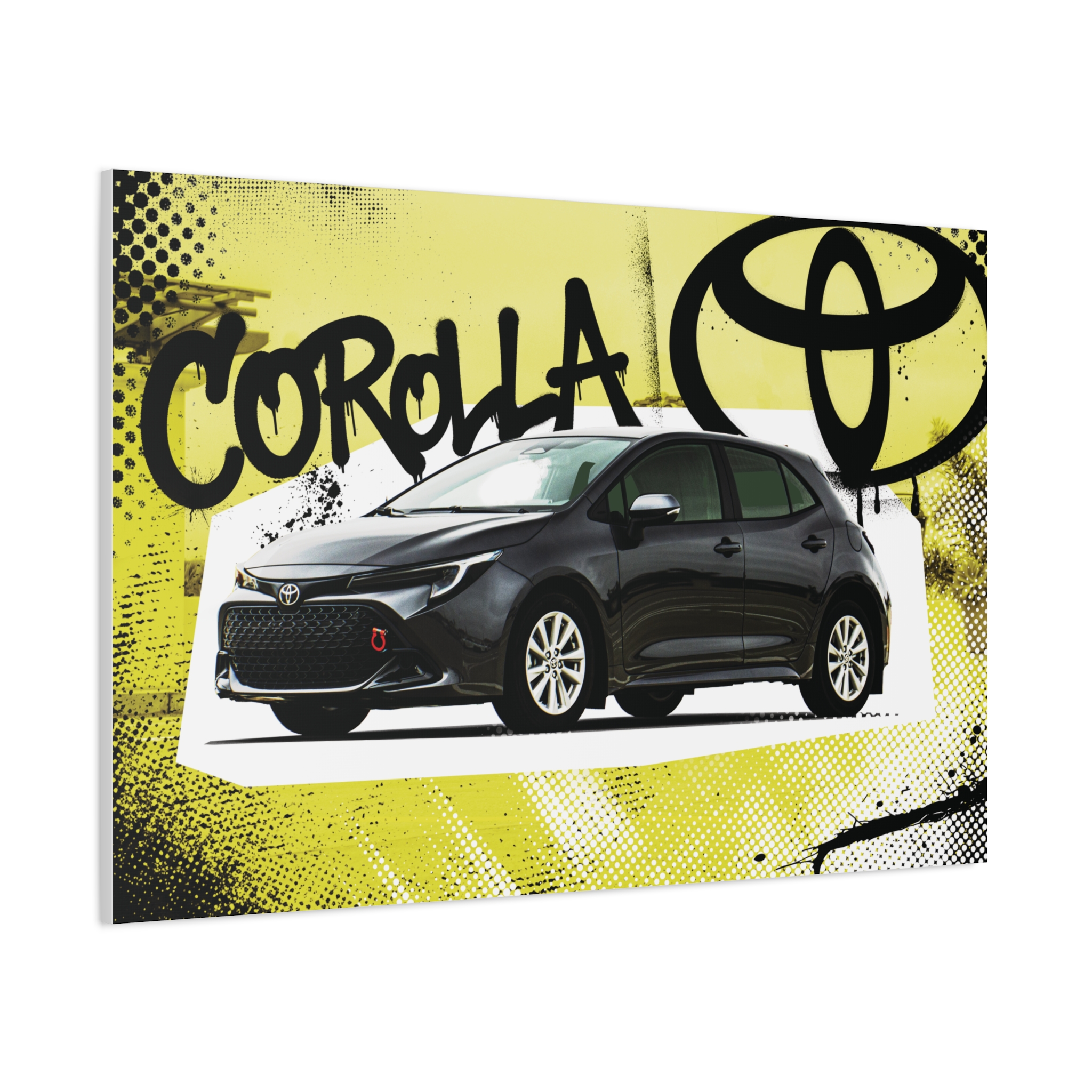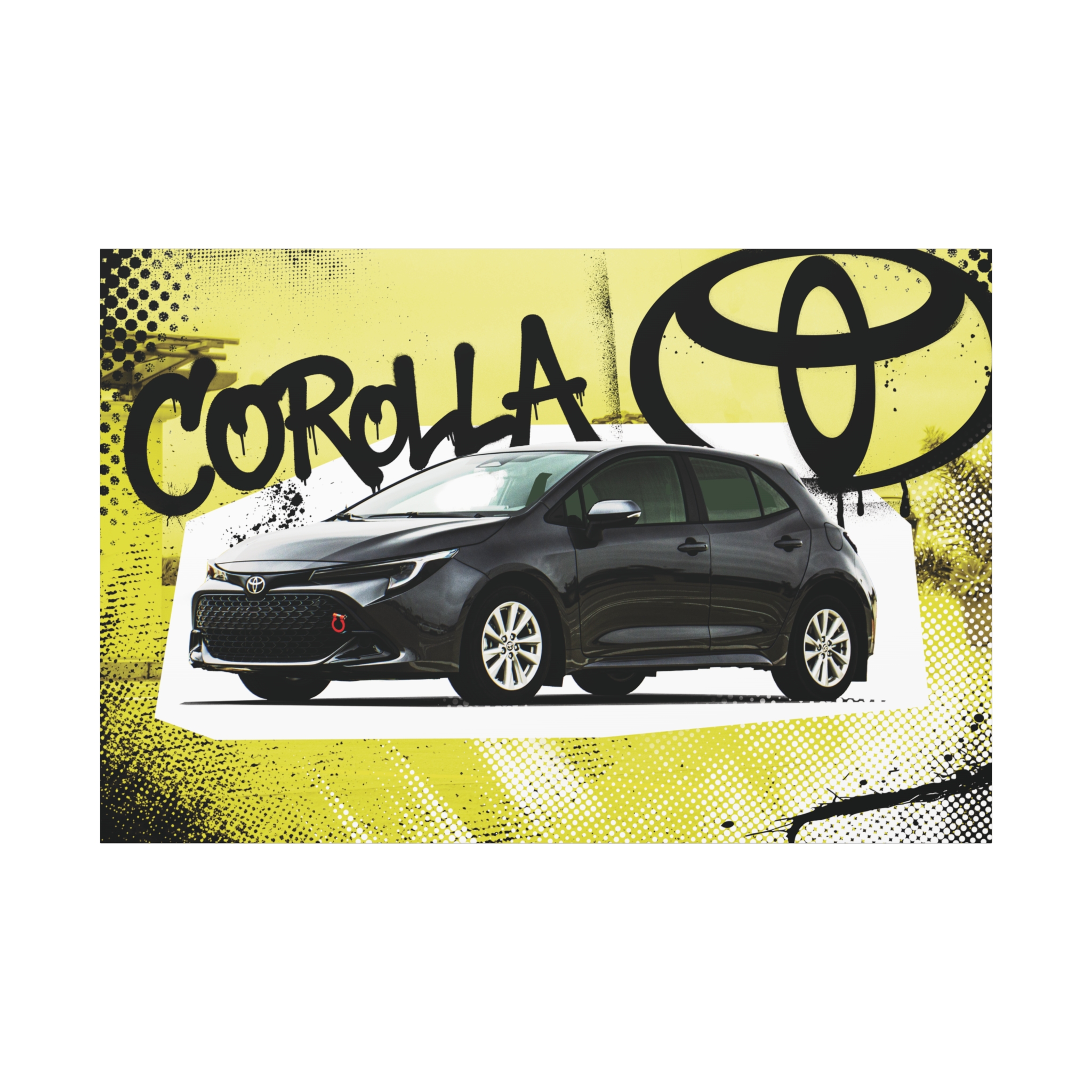 Capturing the raw energy of street culture, this design features the 2025 Corolla Hatchback against a gritty, graffiti-inspired backdrop. It’s a bold fusion of automotive design and urban art that adds a high-octane punch to any room—from your garage to your living space.
